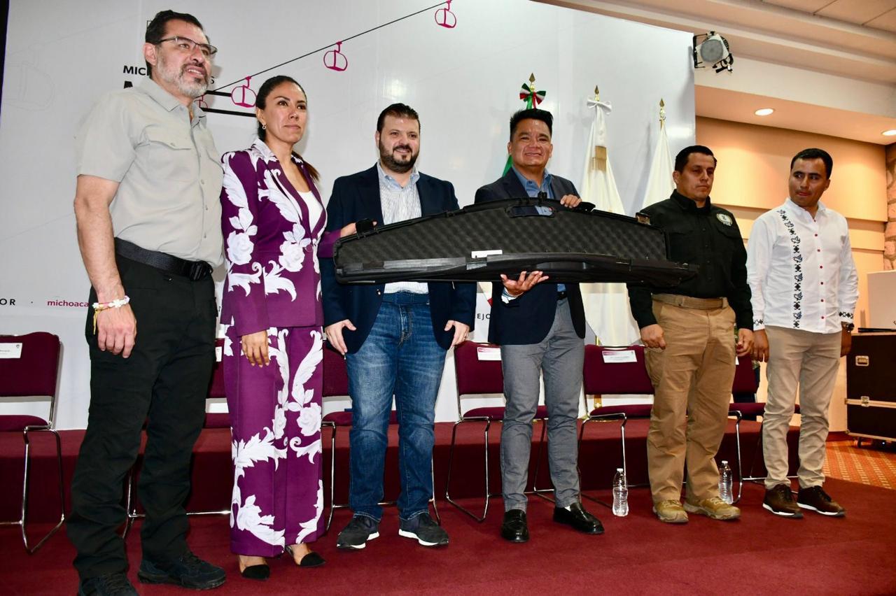 En esta ocasión se distribuyeron 251 armas y 55 mil 400 cartuchos a los municipios de Angamacutiro, Apatzingán, Ecuandureo, Epitacio Huerta, Paracho, Senguio y Tuxpan; y a las comunidades con autogobierno de Crescencio Morales, Donaciano Ojeda y Sicuicho; mientras que la Guardia Civil de Secretaría de Seguridad Pública (SSP) recibió 748 uniformes completos, integrados por camisola, pantalón táctico, un par de botas y gorra.