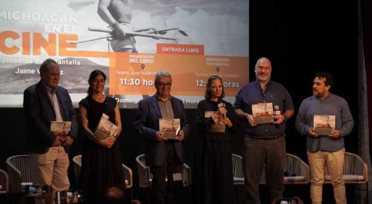Morelia, Michoacán.- En el marco del Festival Internacional de Cine de Morelia (FICM), se llevó a cabo la presentación del libro Michoacán en el cine. Episodios en la pantalla, de Jaime Vázquez, una edición publicada por Cuarta República. Editorial de Michoacán, en colaboración con Huella Digital y con el apoyo de la secretaria de Educación, Gabriela Molina.