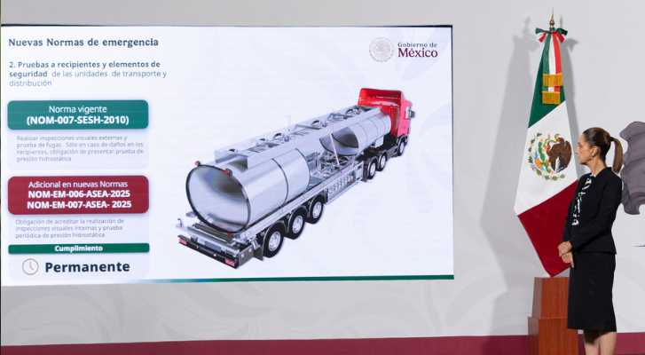 México.- El gobierno de México anunció este 3 de octubre la entrada en vigor de dos Normas Oficiales Mexicanas de Emergencia (NOM-EM-006-ASEA-2025 y NOM-EM-007-ASEA-2025) que buscan elevar los estándares de seguridad en el transporte y la distribución de gas licuado de petróleo (gas LP). La presidenta Claudia Sheinbaum explicó que todas las pipas y unidades que manejen este combustible deberán contar con GPS y control de velocidad, dispositivos que serán monitoreados en tiempo real por un centro de vigilancia de la Secretaría de Energía.