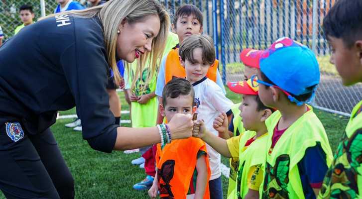 Con la presencia de niñas y niños, así como de alumnas y alumnos que forman parte de los equipos de fútbol de la institución, la rectora dio la bienvenida a las mamás y a los papás que acompañaron a sus hijas e hijos al arranque de este proyecto que busca promover el deporte en las y los infantes y adolescentes.